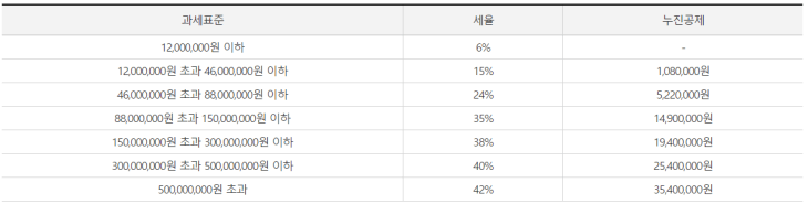Ex. 2019년에 3,600만 원의 종합소득을 기록했다고 가정합니다. 3,600만 원은 ‘1,200만 원 초과 ~ 4,600만 원 이하’에 속하기 때문에 15%의 세율을 적용받습니다. 따라서 2019년 종합소득에 대한 종합소득세는 3,600만 원 X 15% - 108만 원(누진공제) = 432만 원입니다. 그러면 2020년 11월에 납부해야 하는 중간예납 금액은 ‘432만 원’의 50%인 ‘216만 원’인 것입니다.